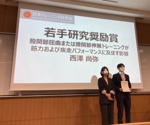 2025年11月22-23日、早稲田大学 東伏見キャンパスにて開催されました「第38回日本トレーニング科学会大会」にて、当研究室M2の西澤尚弥さんが受賞した「若手研究奨励賞」の記念トロフィーをいただきました!