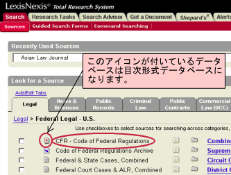 「CFR-Code of Federal Regulations(連邦行政命令集)」をクリックします。 |