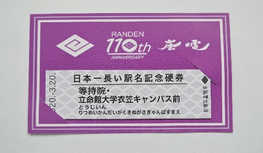 2020(令和2)年3月20日、嵐電の等持院駅が「等持院・立命館大学衣笠キャンパス前」駅となった。