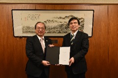本年度の書面評価および実地調査をふまえて、大学評価委員会としての評価結果がとりまとめられ、委員長より学長に報告が行われました。また、評価結果の報告に続いて、意見交換・懇談が行われました。