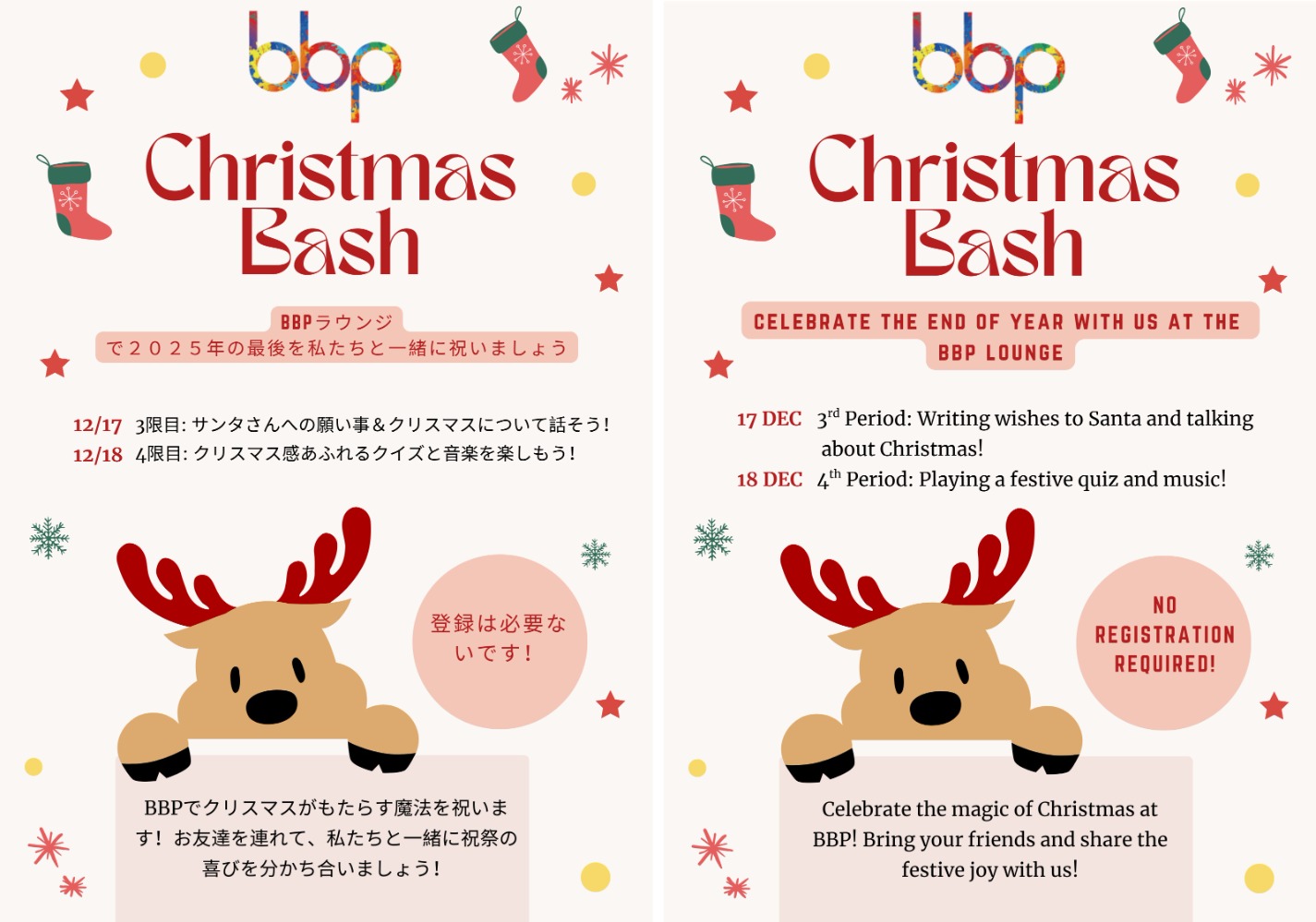 イベント情報Events home イベント情報 / Events OICのイベント アーカイブ Archive OICのイベント一覧 01 Apr Wed 衣笠 BKC OIC BBP Language Exchange Program 2026 Spring✿ 12 Mar Thu 衣笠 BKC OIC 言語学習+R WEBページが公開されました! 18 Feb Wed 衣笠 BKC OIC Let’s Create a Catchphrase for Omi Beef in A traditional Kyoto townhouse/ 近江牛のキャッチコピーを考えよう! 07 Jan Wed 衣笠 BKC OIC OIC| Cross Cultual Cup 2 18 Dec Thu 衣笠 BKC OIC OIC| Christmas Bash 16 Dec Tue 衣笠 BKC OIC 2026年春学期BBPスタッフ募集 / 2026 Spring Semester BBP Staff Recruitment 15 Dec Mon 衣笠 BKC OIC Experience Japanese culture 着付けと日本舞踊を体験しましょう! 08 Dec Mon 衣笠 BKC OIC 2026年4月開設 言語学習+R WEBページ開設キャンペーンのお知らせ 05 Dec Fri 衣笠 BKC OIC OIC| Italy Day -Culture Carnival Week- 1 2 3 4 5 6 7 8 9 10 11 12 13 14 15 16 17 18 19 20 21 22 23 24 25 26 27 28 29 30 31 32 33 34 35 36 37 38 39 40 41 42 43 44 45 46 47 48 49 Next