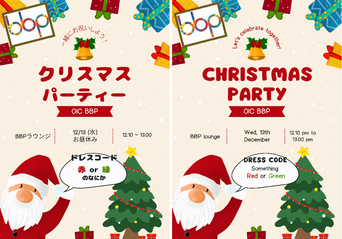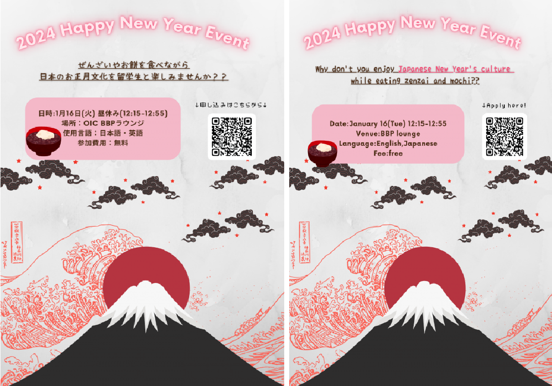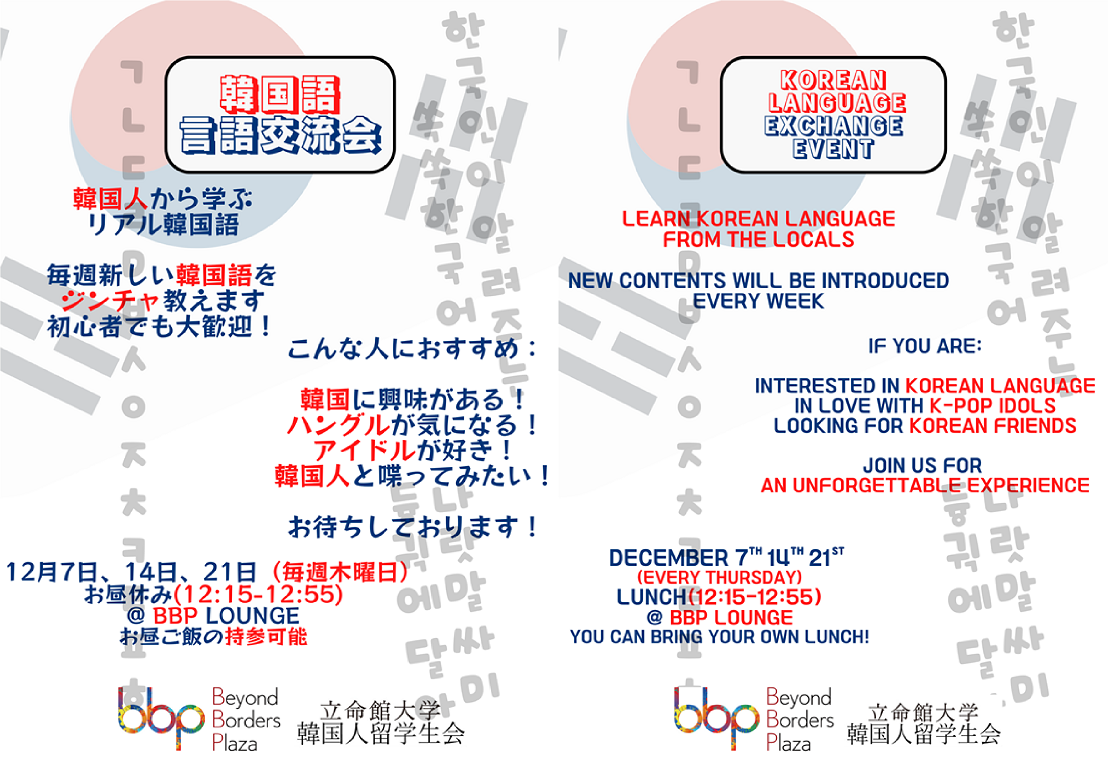 イベント情報Events home イベント情報 / Events OICのイベント アーカイブ Archive OICのイベント一覧 19 Jan Fri 衣笠 BKC OIC OIC BBP イベント “Studying for TOEIC tests, how? A quick review” 16 Jan Tue 衣笠 BKC OIC OIC Happy New Year Event 2024 22 Dec Fri 衣笠 BKC OIC OIC BBP Christmas Enjoy Party! 22 Dec Fri 衣笠 BKC OIC キャリアl留学と就活は両立できるのか 21 Dec Thu 衣笠 BKC OIC OIC BBP 韓国語コミュニケーション交流会/ OIC BBP Korean Language Exchange 13 Dec Wed 衣笠 BKC OIC OIC BBP クリスマスパーティー2023 / OIC BBP Christmas Party 2023 22 Nov Wed 衣笠 BKC OIC OIC BBP スペインフェスイベント~ 初級者から上級者まであらゆるレベルを歓迎します/Spanish Fes! Event ~ Welcoming all levels from beginner to advanced speakers 21 Nov Tue 衣笠 BKC OIC (ALL) 大学院留学準備セミナー/Preparatory Seminar for Graduate Study Abroad 21 Nov Tue 衣笠 BKC OIC キャリアl世界銀行で働く~求める人材像は?採用の仕組みは?(Zoom開催) Previous 1 2 3 4 5 6 7 8 9 10 11 12 13 14 15 16 17 18 19 20 21 22 23 24 25 26 27 28 29 30 31 32 33 34 35 36 37 38 39 40 41 42 43 44 45 46 47 48 49 Next