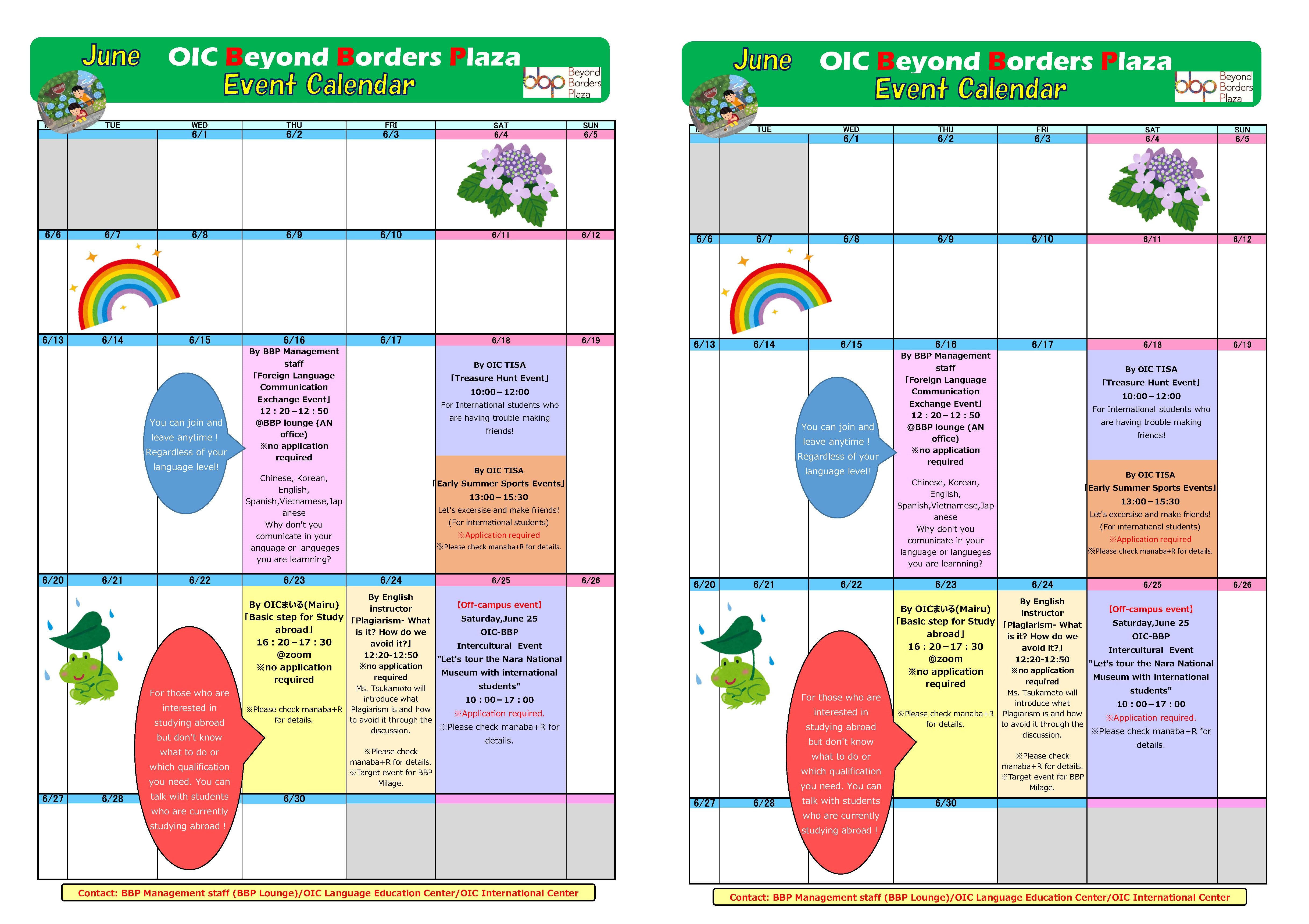 イベント情報Events home イベント情報 / Events OICのイベント アーカイブ Archive OICのイベント一覧 14 Jun Tue 衣笠 BKC OIC SUP! Talk Fest 「各国の方言」 Let’s talk about “Dialects of various countries”! 13 Jun Mon 衣笠 BKC OIC 無料講座「2022年度春学期 スペイン語検定対策講座」 08 Jun Wed 衣笠 BKC OIC Let's Meet Families in the World! (世界の家族にこんにちは!) 08 Jun Wed 衣笠 BKC OIC Expand your possibilities and help address global issues at the UN (2022/6/8@Zoom) 03 Jun Fri 衣笠 BKC OIC Welcome to Scotland! - Short talk and quiz - 01 Jun Wed 衣笠 BKC OIC 6月イベントカレンダー/ OIC BBP Event calendar - June - 01 Jun Wed 衣笠 BKC OIC 6月イベントカレンダー/ OIC BBP Event calendar - June - 31 May Tue 衣笠 BKC OIC 第2回「留学のための英語学習TIPS!」 26 May Thu 衣笠 BKC OIC 【OICまいる主催イベント】あつまれ まいるワールド~留学相談会Ver.~ Previous 1 2 3 4 5 6 7 8 9 10 11 12 13 14 15 16 17 18 19 20 21 22 23 24 25 26 27 28 29 30 31 32 33 34 35 36 37 38 39 40 41 42 43 44 45 46 47 48 49 Next