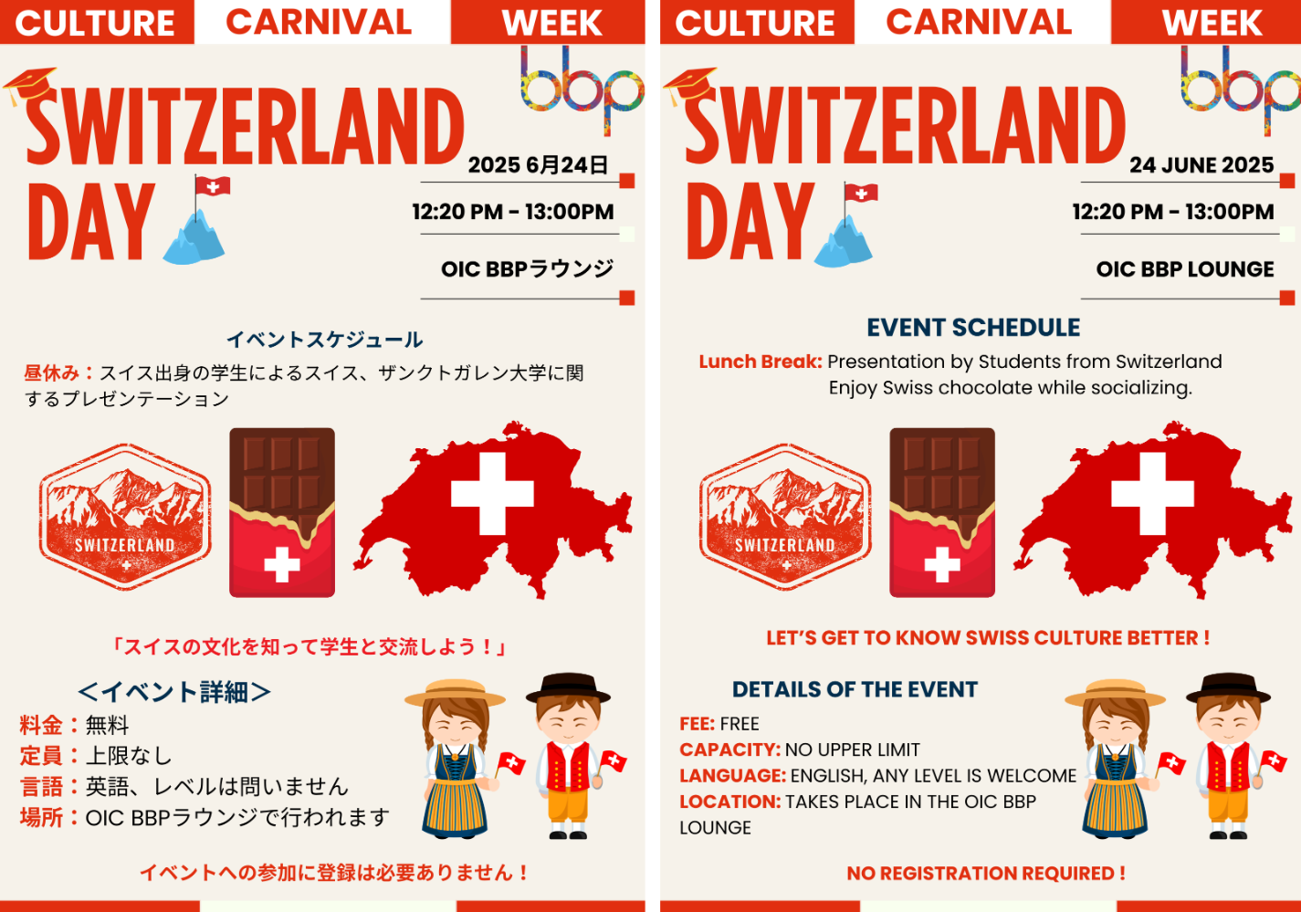 イベント情報Events home イベント情報 / Events OICのイベント アーカイブ Archive OICのイベント一覧 25 Jun Wed 衣笠 BKC OIC OIC| THAILAND DAY -Culture Carnival Week 24 Jun Tue 衣笠 BKC OIC OIC| Switzerland Day -Culture Carnival Week- 23 Jun Mon 衣笠 BKC OIC OIC| France Day -Culture Carnival Week- 23 Jun Mon 衣笠 BKC OIC OIC | 2025年秋学期BBPスタッフ募集/2025 Fall Semester BBP Staff Recruitment 19 Jun Thu 衣笠 BKC OIC FIESTA LATINAに参加してスペイン語で繋がろう! 13 Jun Fri 衣笠 BKC OIC OIC| Practical Japanese Dialogue Workshop! 実践日本語会話ワークショップ 09 Jun Mon 衣笠 BKC OIC OIC| ALUMNI TALK #2 第2回 卒業生トーク - 卒業後の進路について考える 30 May Fri 衣笠 BKC OIC OIC| ALUMNI TALK 卒業生トーク - 卒業後の進路について考える 30 May Fri 衣笠 BKC OIC OIC| バレーボールイベント Volleyball Event Previous 1 2 3 4 5 6 7 8 9 10 11 12 13 14 15 16 17 18 19 20 21 22 23 24 25 26 27 28 29 30 31 32 33 34 35 36 37 38 39 40 41 42 43 44 45 46 47 48 49 Next