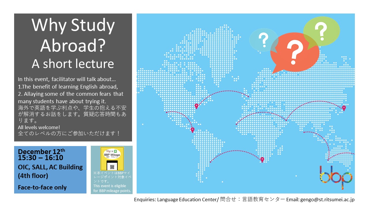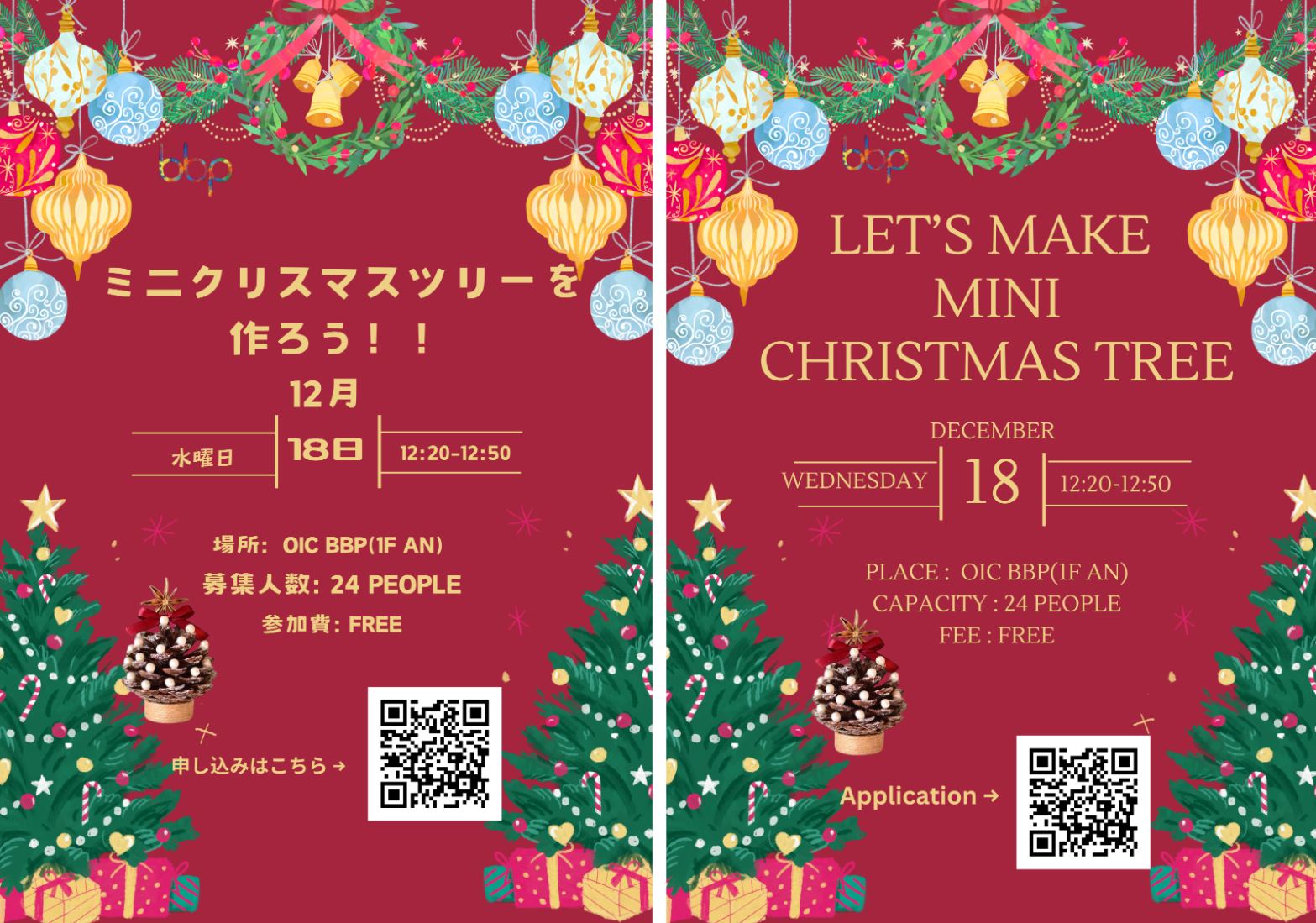 イベント情報Events home イベント情報 / Events OICのイベント アーカイブ Archive OICのイベント一覧 18 Dec Wed 衣笠 BKC OIC OIC | ツリーに願いを Make a wish upone tree! 18 Dec Wed 衣笠 BKC OIC OIC | ミニクリスマスツリーを作ろう! Let's make mini Christmas tree! 16 Dec Mon 衣笠 BKC OIC KIC OIC l 世界!みりょく発見!~SKP生に聞いてみよう!~Discover the World's Charms! ~Ask the SKP Students~ 12 Dec Thu 衣笠 BKC OIC OIC| Why Study Abroad? 09 Dec Mon 衣笠 BKC OIC OIC | 味噌汁&おにぎり 味くらべイベント -Miso Soup & Onigiri tasting event- 03 Dec Tue 衣笠 BKC OIC (ALL) 海外大学院留学学生同士の座談会/ Graduate School Abroad Discussion 30 Nov Sat 衣笠 BKC OIC OIC | Soccer Event 28 Nov Thu 衣笠 BKC OIC OIC | Happy Thanks Giving 22 Nov Fri 衣笠 BKC OIC OIC | ベトナムコーヒー Let's make Vietnamese Coffee together! Previous 1 2 3 4 5 6 7 8 9 10 11 12 13 14 15 16 17 18 19 20 21 22 23 24 25 26 27 28 29 30 31 32 33 34 35 36 37 38 39 40 41 42 43 44 45 46 47 48 49 Next