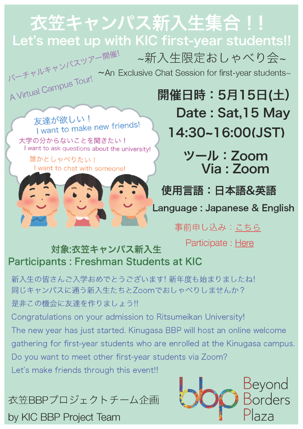 対象:キャンパスや学部、研究科を問いません。どなたでもご参加ください。