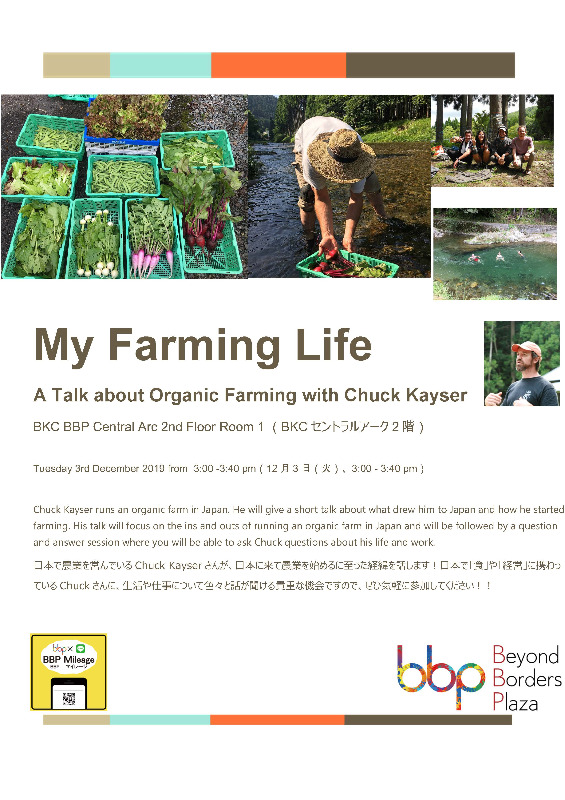 Chuck Kayser runs an organic farm in Japan. He will give a short talk about what drew him to Japan and how he started