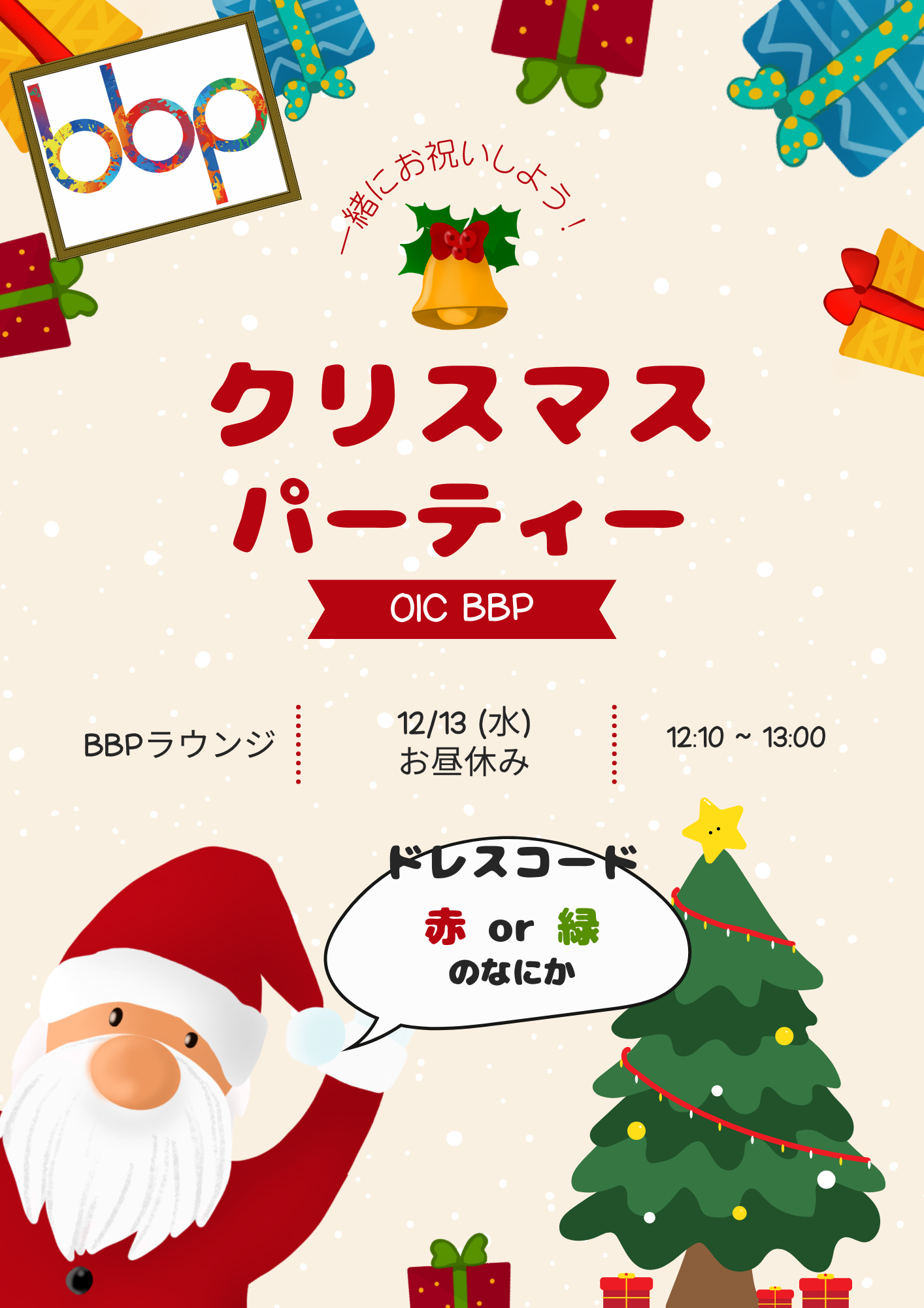 こんにちは、OIC BBPです。クリスマスパーティー開催のお知らせです!