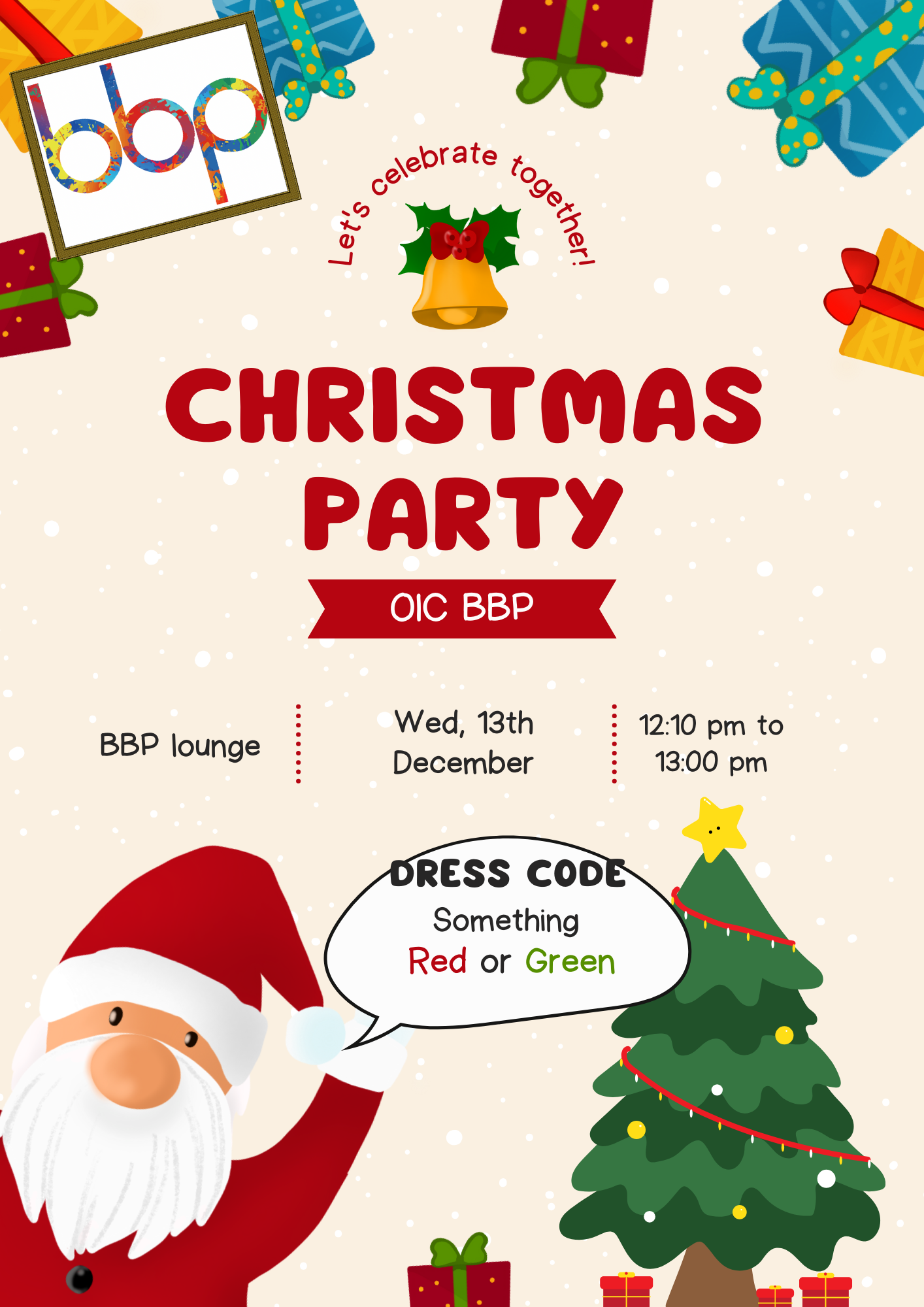 Hello, it's OIC BBP! We are excited to announce a Christmas party!