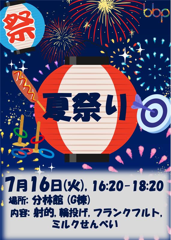 2024年7月16日(火)16:20-18:20に「夏祭り」を開催します!