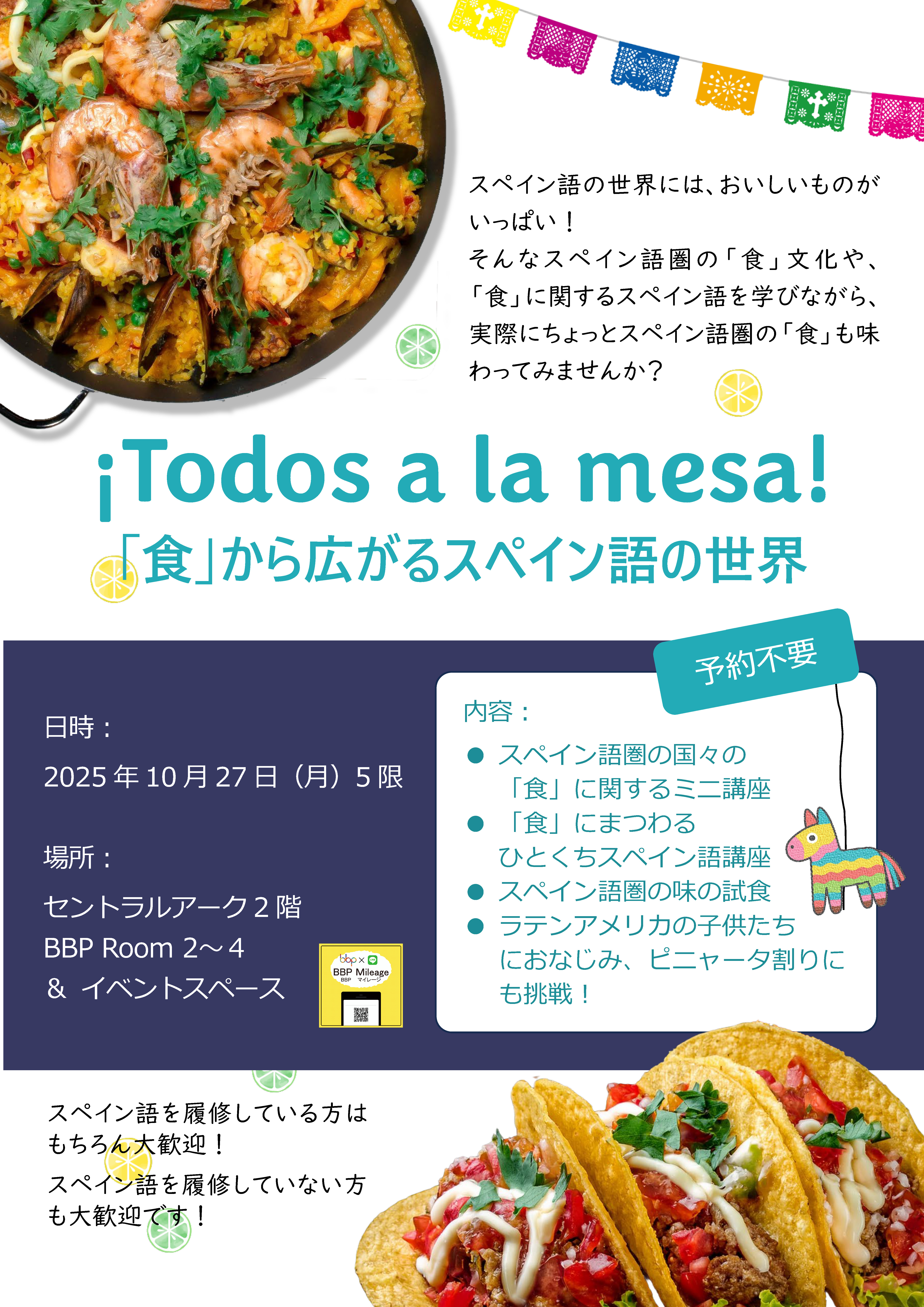 BKC|対面¡Todos a la mesa! 「食」から広がるスペイン語の世界開催日時:25.10.27