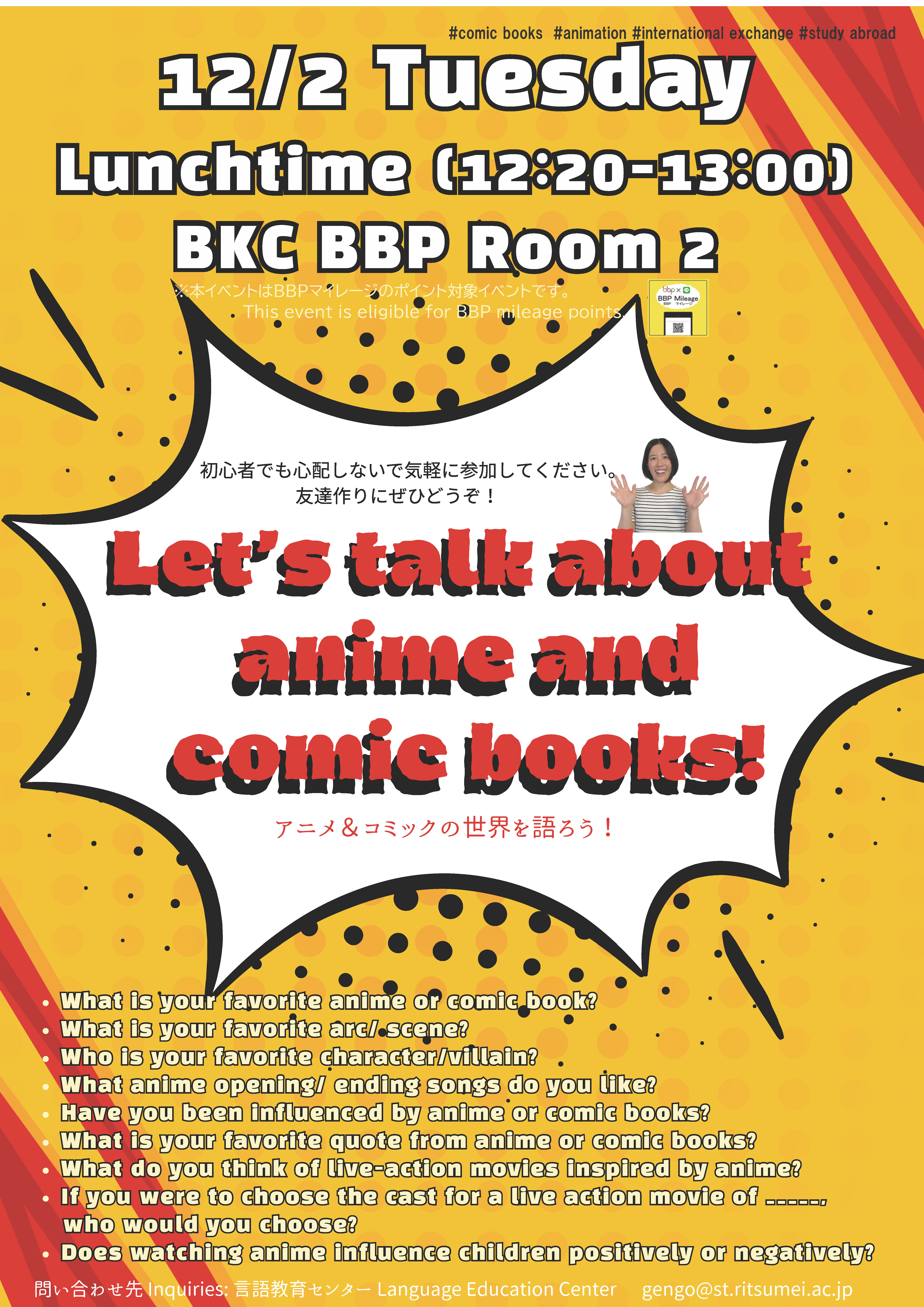 BKC|対面Let’s Talk about Anime and Comic books!開催日時:25.12.02