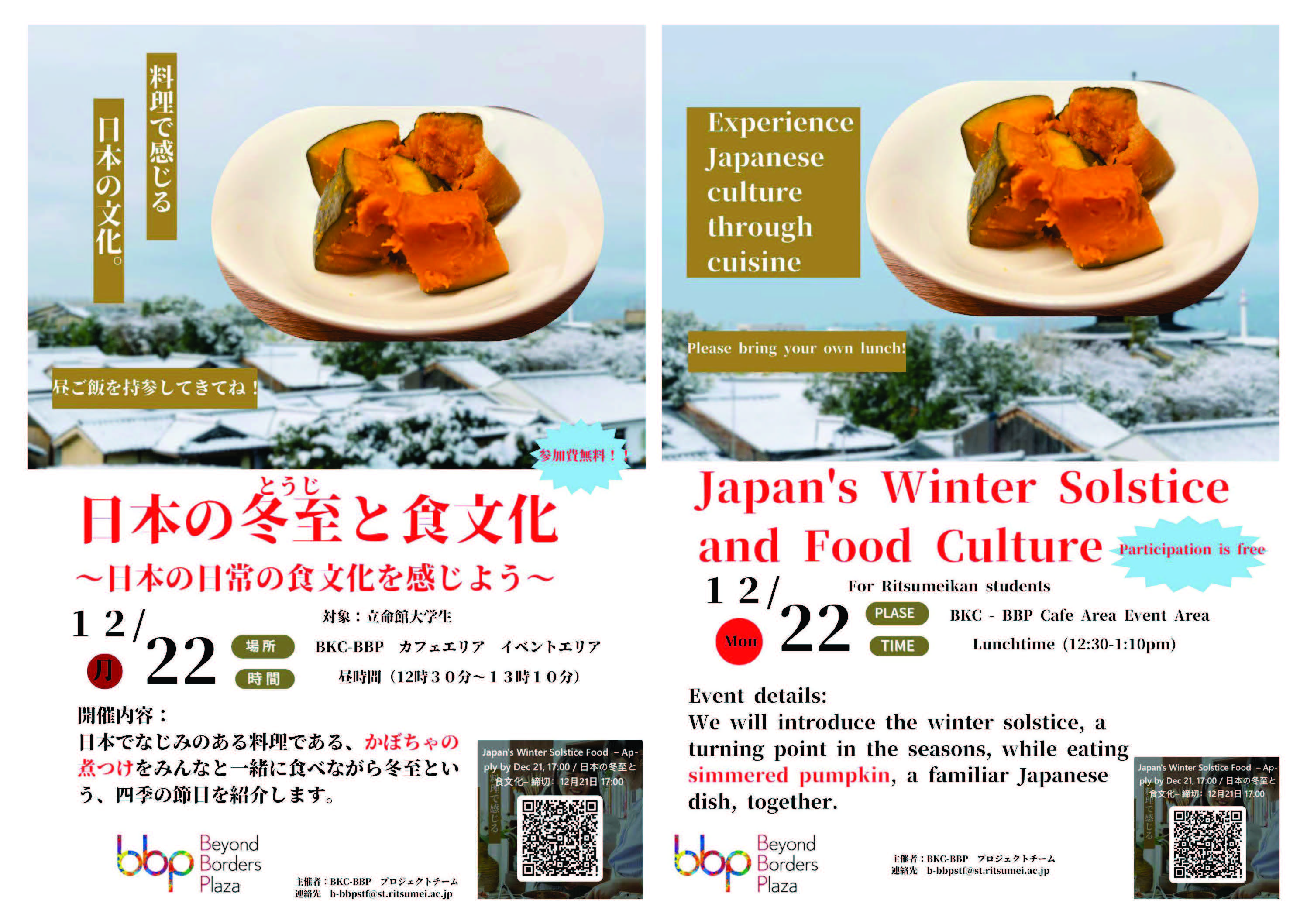 BKC|対面BKC|Winter solstice and food culture in Japan~Experiencing everyday Japanease food traditions~開催日時:25.12.22