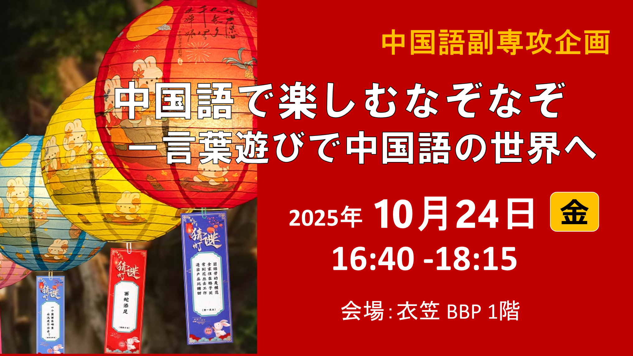 KIC|対面中国語で楽しむなぞなぞ―言葉遊びで中国語の世界へ開催日時:25.10.24