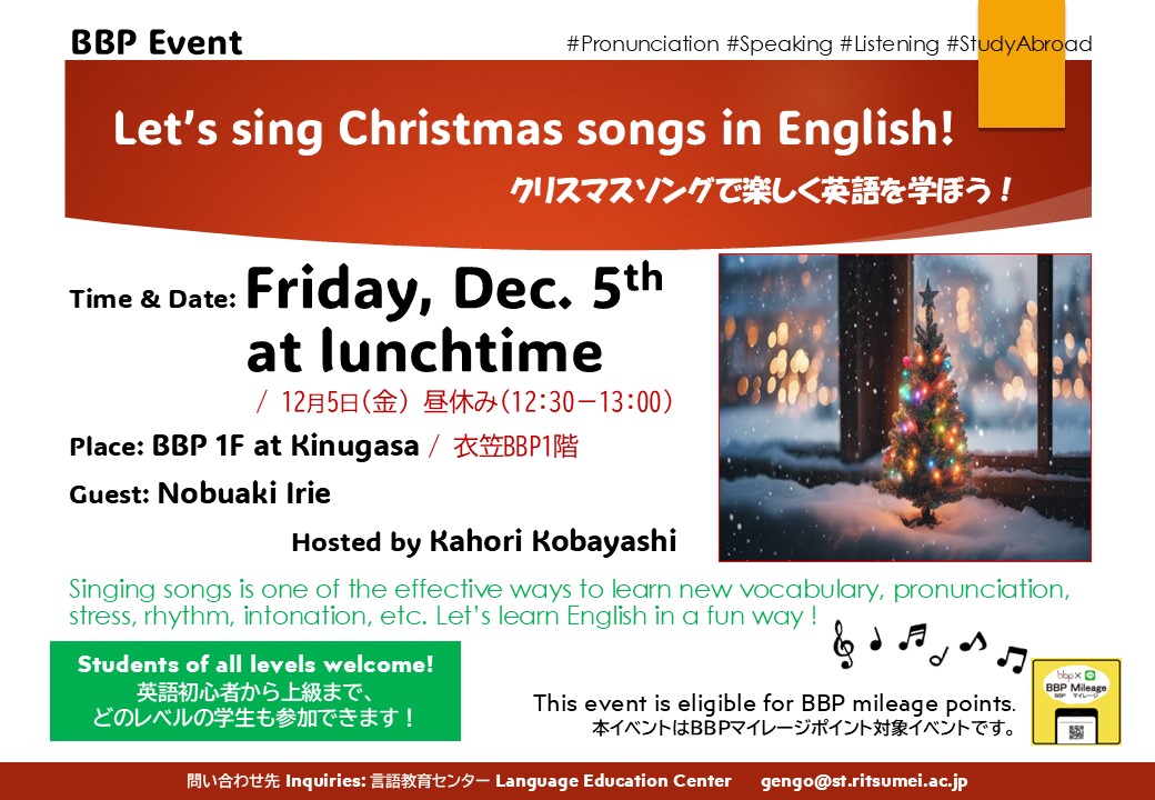 KIC|対面Let's sing Christmas songs in English!開催日時:25.12.05