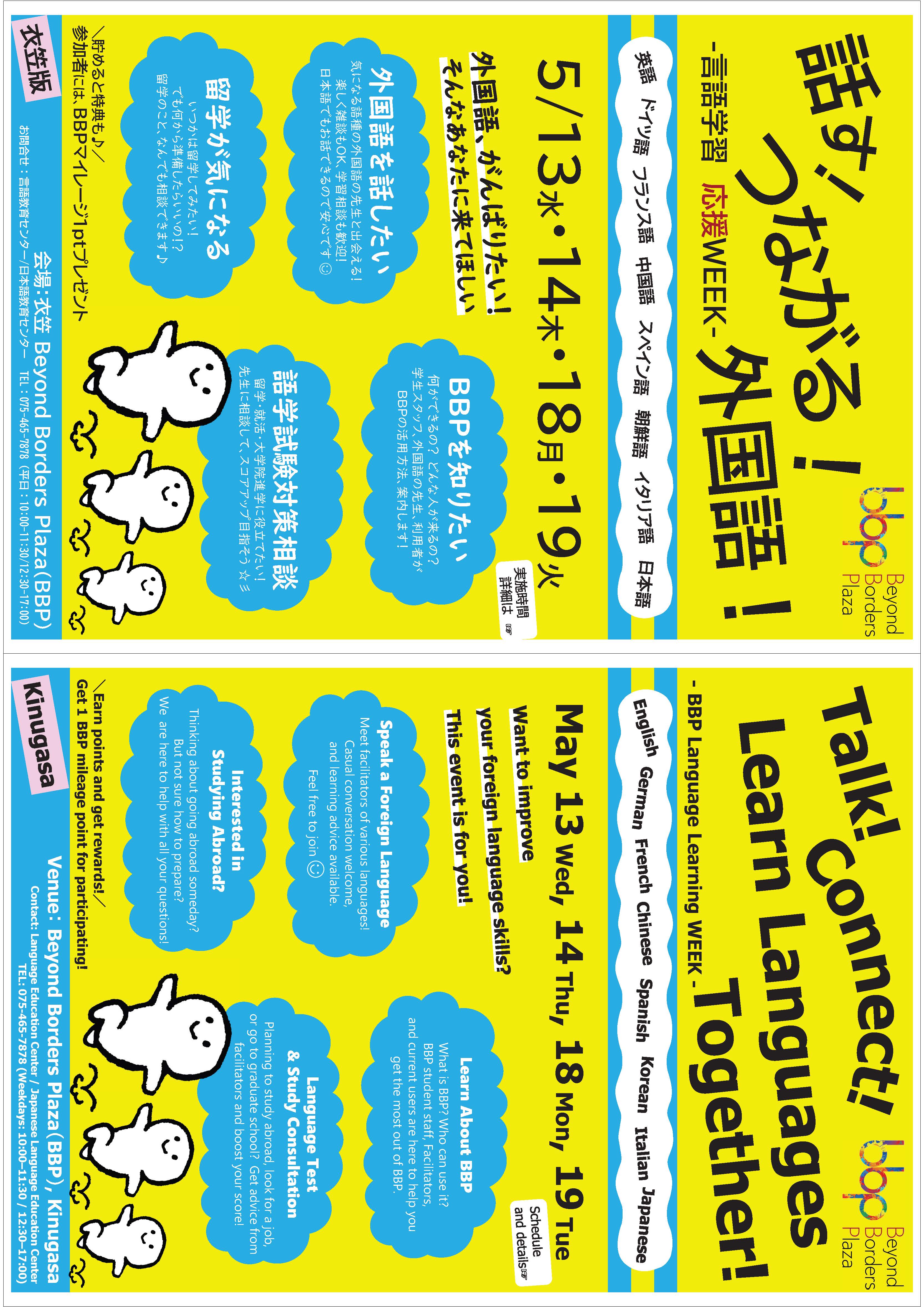 KIC|対面衣笠 BBP 言語学習応援WEEK! =話す!つながる!外国語!=開催日時:26.05.13