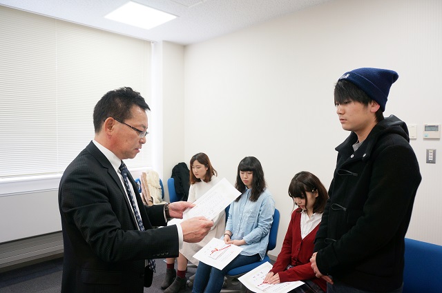 授賞式には出席できなかった佳作の小田さんも後日無事賞状を受け取りました。