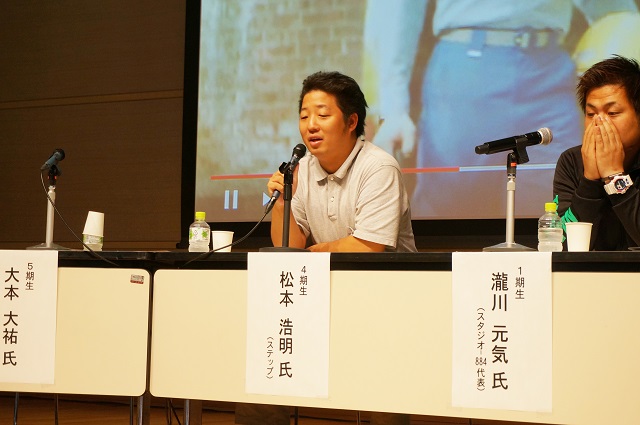 特に、1期生の瀧川元気さんからは、「映像学部卒業生の皆は行く行くは現場を動かしていくプロデューサーになっていくべき存在であるということを自覚すべき。そのために最も必要なのはコミュニケーション力。様々なクライアントと仕事をする上で、趣味や知識の幅を広げ、常に相手のニーズに応えられるよう準備しておくことが大事」とのメッセージが語られ、同席していたOBの皆さんも深くうなずいていました。