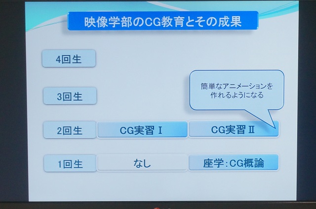 映像学部ではこのように実習系の科目が分野ごとに数多く開講されています。そして、他にも「アニメーション映画をどのように売るか」、「アニメーション映画の歴史はどのような変遷を遂げているのか」など多角的な視野から学べる講義系科目もあり、将来の進路の幅を広げることができます。