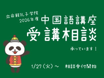 ニュース/お知らせ 2026.1.10 中国留学中の奨学生からのレポート「留学生の声」12 月分をUPしました 2026.1.10 2026年度中国語講座(通年・前期)の詳細をUPしました 2026.1.10 2026年度前期 時事中国語翻訳講座~三潴正道先生のレベル式読解力養成講座の詳細をUPしました 2026.1.10 2026年度春季弱点克服講座の詳細をUPしました 2026.1.10 2026年度中国語講座 受講相談の詳細をUPしました 2026.1.6 【休講・補講】 1/24(土)中国語講座 オンライン教室・初級Ⅰ速成コース(講師:金子真生)休講・補講のお知らせ 一覧へ