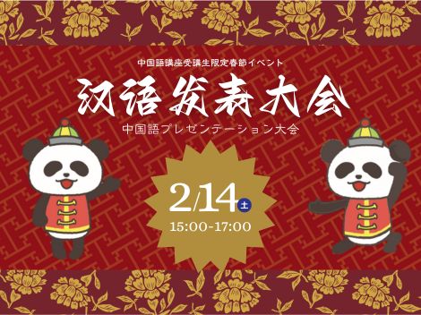 これからの講座・イベント 1 / 24 (土) 第214回中国理解講座 「中国の書と日本の書」(東京学堂) 承 春先 氏(大東文化大学、東洋大学、立命館孔子学院東京学堂講師) 詳しく見る 2 / 14 (土) 2026年春節イベント「中国語プレゼンテーション大会」 詳しく見る 12 / 6 (土) 第213回中国理解講座 「中国古代の動物の造形」 山本 堯 氏(公益財団法人泉屋博古館 学芸員) 詳しく見る 12 / 7 (日) HSK 2025年12月7日(日)受験(申込締切:11月7日) 詳しく見る 11 / 29 (土) 2025年度中国古典文化講座④「明朝と上杉景勝―武官任命通知書の授与と伝来―」 大野 晃嗣 氏(東北大学大学院文学研究科教授) 詳しく見る 11 / 22 (土) 2025年11月読書会「あひるの喜劇」魯迅を読む 永井 英美 氏(立命館孔子学院中国語講師) 詳しく見る 一覧へ