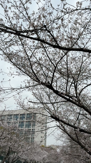 ●3月に入り、花々が咲き誇る季節になりました。市内の様々な公園を訪れ、花々を鑑賞しています。梅やチューリップ、木蘭、そして現在はどこも海棠と桜が満開です。キャンパス内の海棠とトンネルのように道の両側にある桜も昨日今日でほぼ満開になりました。学内の桜は日中友好記念のものだそうです。今月上旬に日帰りで訪れた無錫でも中日友好記念桜を見ました。これらのソメイヨシノを見るたびに、自国の政府に対し、この築いた友好を手放さないでほしいという強い思いと共に、自身は日本の友人や家族に中国での経験をもっと伝えていこうと思いました。(同済大学)