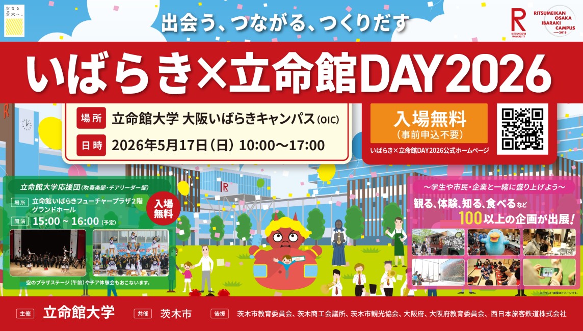 本年度も、地域のみなさまと大学をつなぐ交流イベント「いばらき×立命館DAY 2026」 を開催いたします。
