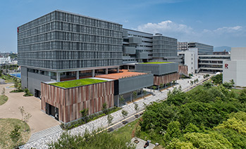 教学施設を中心に配置した学舎棟です。大・小規模の多様な「学ぶ」「教える」スタイルに対応する、様々な規模の空間が揃っています。PCや大型タッチディスプレイなど、設備も充実。試験運営だけでなく、研修や学会などさまざまな目的でご利用いただけます。