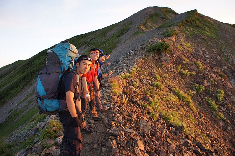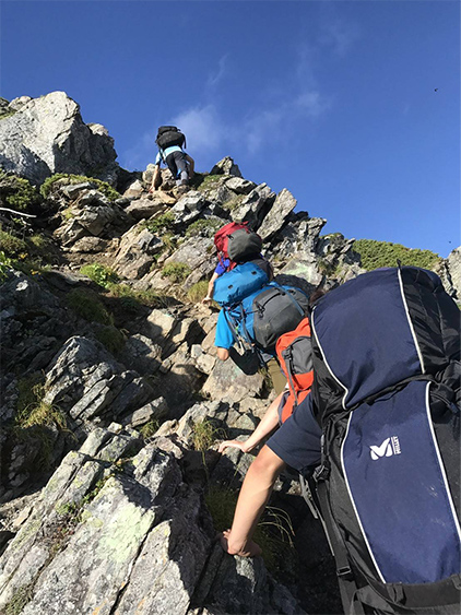 山岳部は、登山、冬山登山(任意)、クライミングをしています。自然を相手にする活動なので絶対に安全とはいえませんが、正しい知識と技術を身につければ危険は回避できます。まだ見たことのない壮大な景色、大学でしか経験できない登山をしてみませんか?随時入部お待ちしております!
