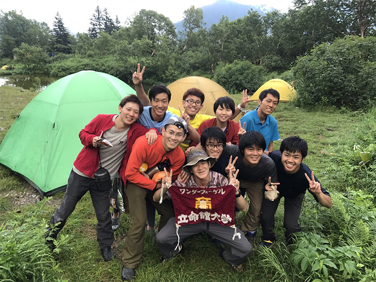 | 主な活動場所 | <ミーティング> 隔週、衣笠・BKCで交互に実施 <学期中> 近畿圏内で活動 <長期休暇中> 日本各地の山や観光地 |