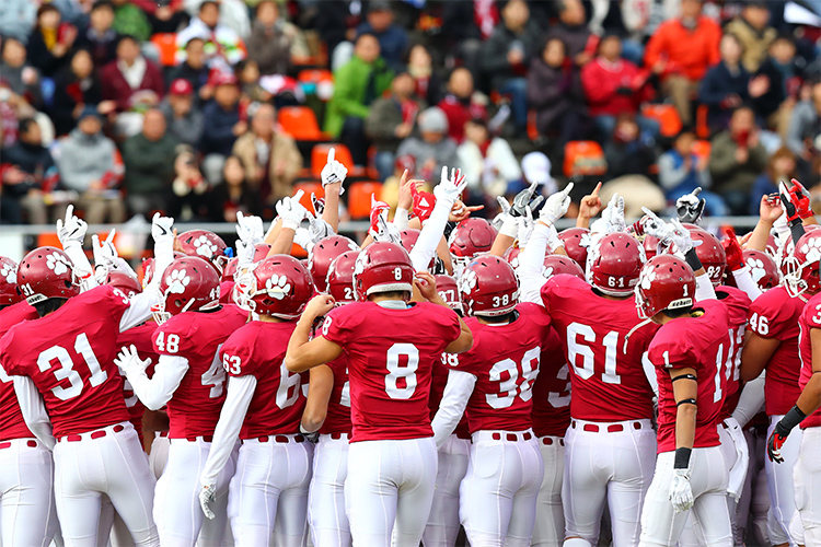 体育会アメリカンフットボール部です。日本一になること、尊敬され、支援されるチームになること、立命館大学生として成長することをチームゴールとし、全員がこのゴールに向かって、全力で日々練習に取り組んでいます。