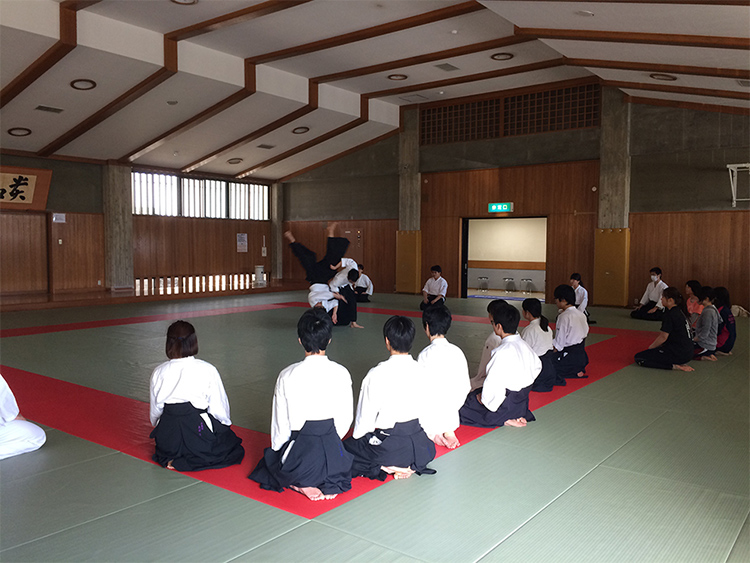 「武道家としてふさわしい姿勢で稽古に励む」を目標に日々精進しています。当団体は、京都府及び滋賀県内はもとより、関西の多くの大学の合気道部とも広く交流を深め、精力的に活動しています。また2017年には創部55周年を迎え、新たなスタートを切りました。