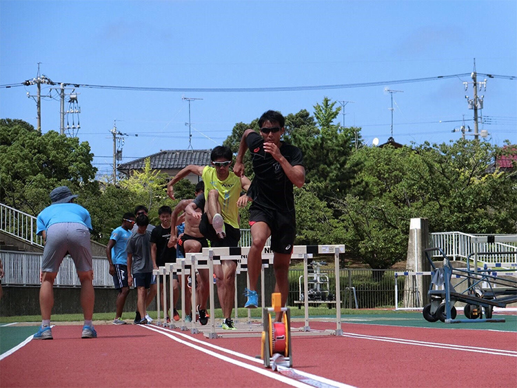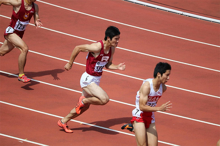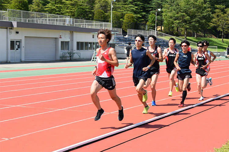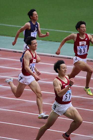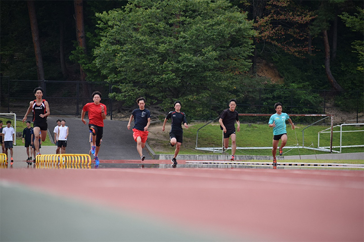私たち体育会男子陸上競技部は「走る」、「跳ぶ」、「投げる」といった動作を究めるために、日々クインススタジアムで練習に取り組んでいます。チームが掲げた目標はもちろん、個人の目標に向かって、それぞれが何をすべきか考えながら競技と向き合っています。個人競技と思われがちですが、仲間がいることで、より高みを目指せる部活です。