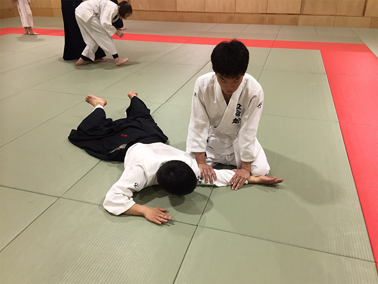 絶えず考えながら稽古し、合気道を通じて相手と自分と身体とのコミュニケーションを図ります。他大学とも連携しており、希望の頻度と場所で稽古することも可能です。少しでも興味をお持ちの方はDMなどで気軽にご連絡いただき、お越しいただければと思います。