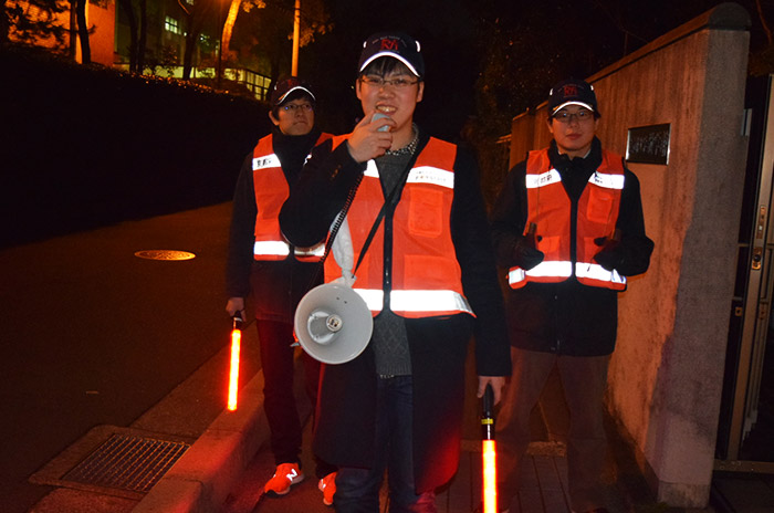 私たちは、京都府の支援を受けて防災・防犯活動を行うボランティアサークルです。主な活動は、およそ月に1回、拍子木を用いた地域の夜回りをしています。その他には、学園祭の防火巡回、大学内や地域の防災訓練の運営補助をしています。他大学の防災・防犯系サークルとの交流もあります。私たちと一緒に防災しませんか。