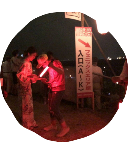 ボランティア活動 8月、新潟県の長岡まつり大花火大会でチケット確認などを行いました。