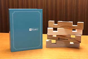 2019年3月、今年も約8000人の学生が立命館大学を卒業した。その卒業生たちに贈られる校友会入会記念品(以下、卒業記念品)「Peer Sticks」の製作に取り組んだ臼本さんら経営学部のプロジェクトメンバーたち。今回、初めて学生が卒業記念品製作に企画から携わり、約1年半の製作期間を経て、卒業生たちに贈られた。アルバムのようなボックスに入っているのは、組み合わせが自由な4本の木製のスティック。スマホスタンドやコースター、鍋敷、写真立てというように、歳を重ねるごとに変化していく生活スタイルに合わせて、組み替えて使うことができる。
