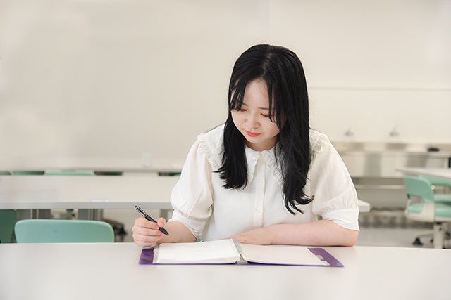 関西大倉高等学校卒業。小学生のときに、アメリカのコメディドラマ「フルハウス」や韓国の女性アイドルグループ「KARA」の影響で、海外の文化に関心を持ち、英語と韓国語を独学で学び始めた。コロナ禍が収束したら真っ先にやりたいことは、オンライン交流イベントで知り合った韓国の友人とお互いの国を案内しあうこと。オンライン留学プログラムで一番面白かったと感じる講義は、カルチュラルスキーマ、ボディランゲージに関する講義。細かな点にも文化の違いが表れていることを知り、とても楽しく学ぶことができたと語る。