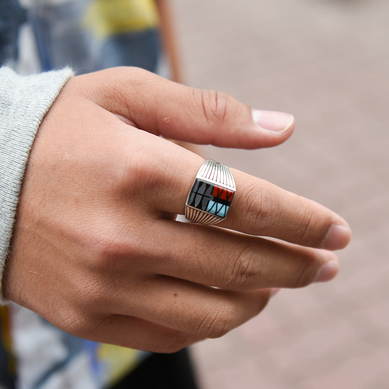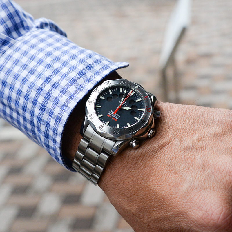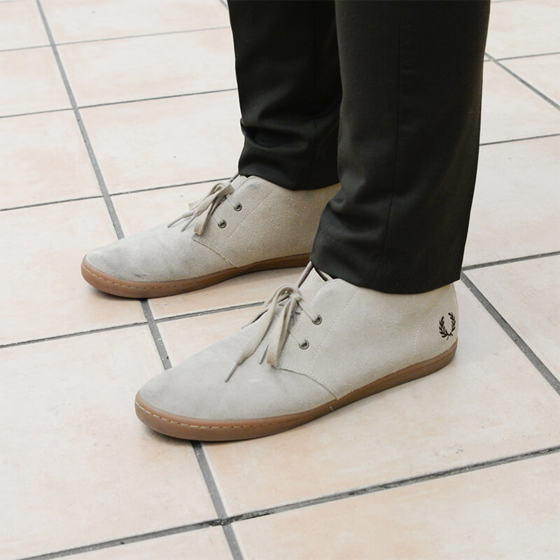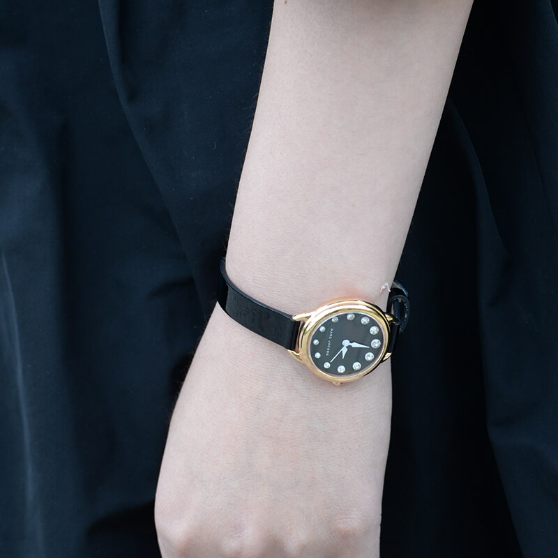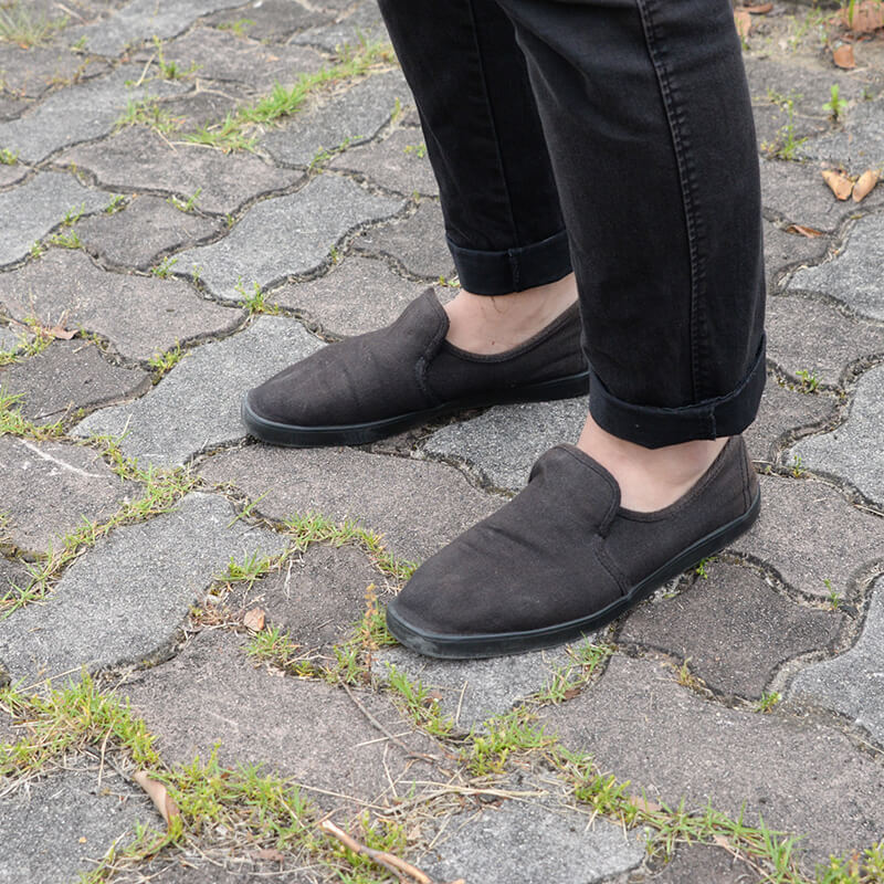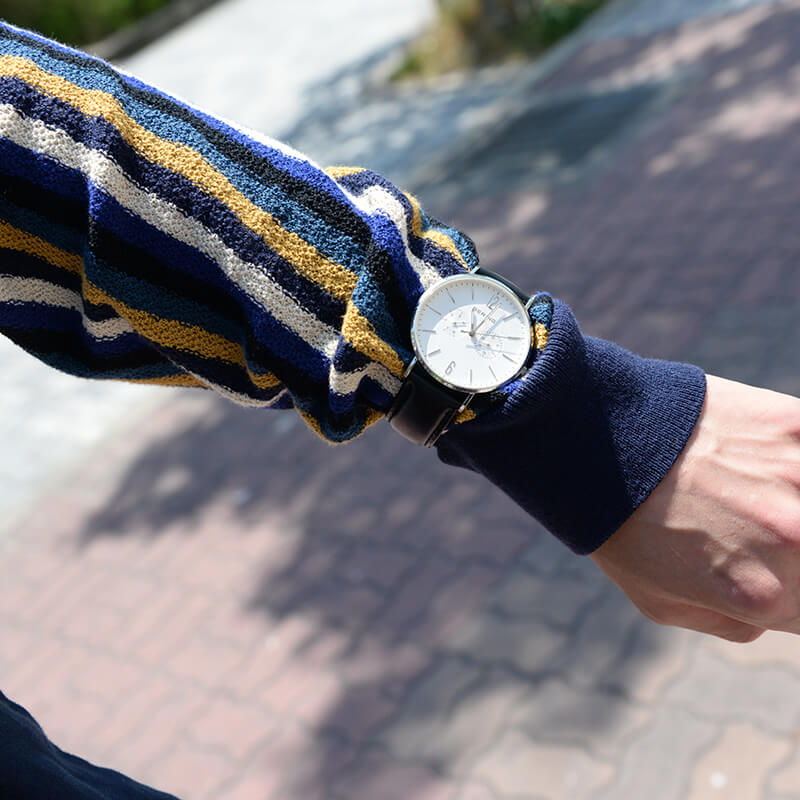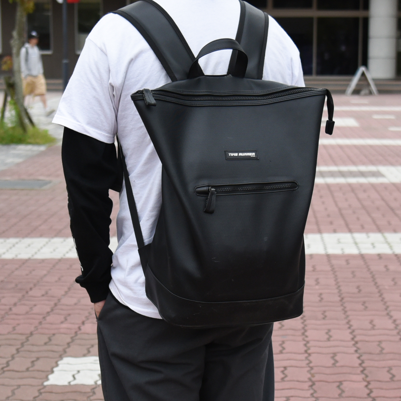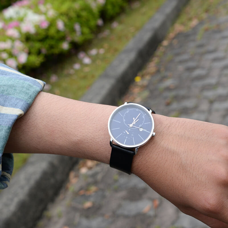 - 全体は黒のコーディネートでワンポイントの赤い靴下