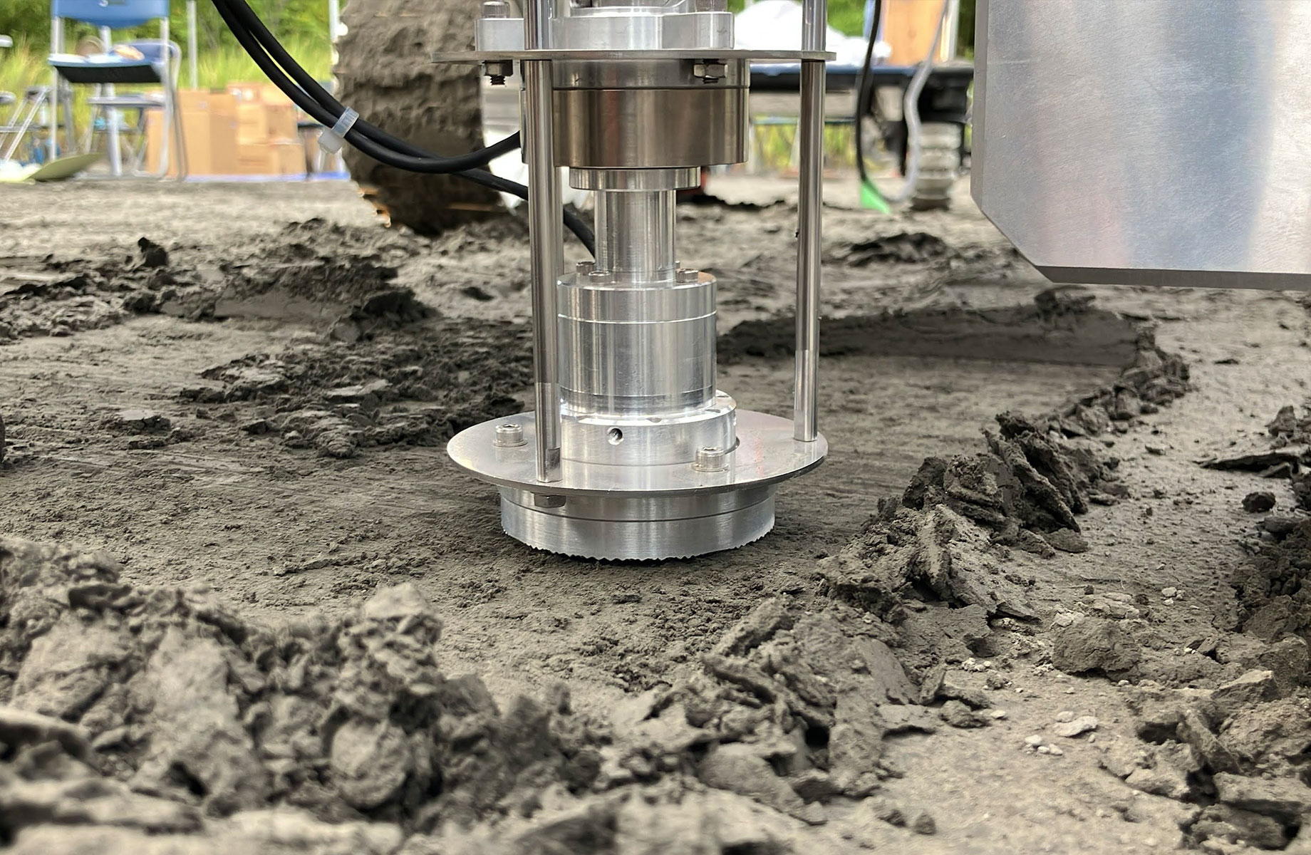 学生時代から、主に月面の表層のレゴリスと呼ばれる土の研究をしてきました。天体に着陸する宇宙機(ランダ―)は、着陸時の地面の特性がわからなければ設計できません。ズブズブと埋まるかもしれないし、跳ね返されるほど硬いかもしれないからです。探査ローバーも同様です。今、JAXAと自動車メーカーが共同開発している月面探査車「有人与圧ローバー」を対象に、登坂可能な斜度などの走行性能に関する共同研究を行っています。こうした機械と土との相互作用を扱う研究分野は、テラメカニクスと呼ばれ、もともとは地上の建設機械や農業機械が対象でしたが、現在は、月や火星で活動する機械の開発にも必要とされています。