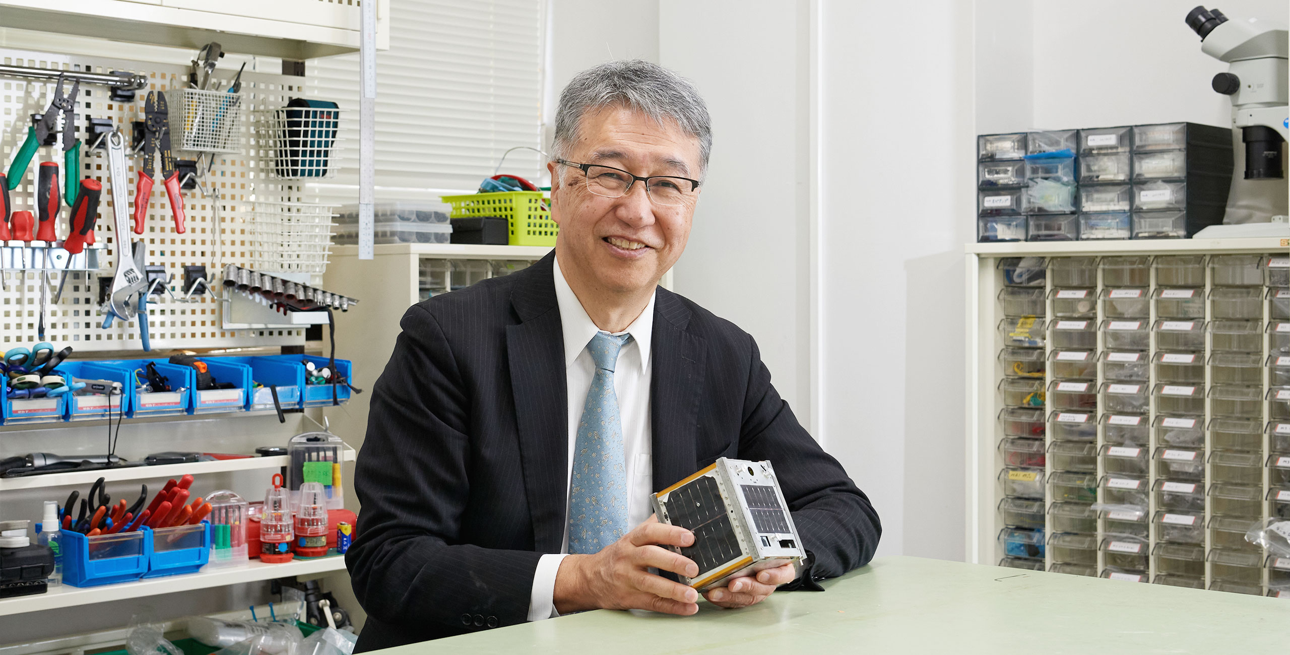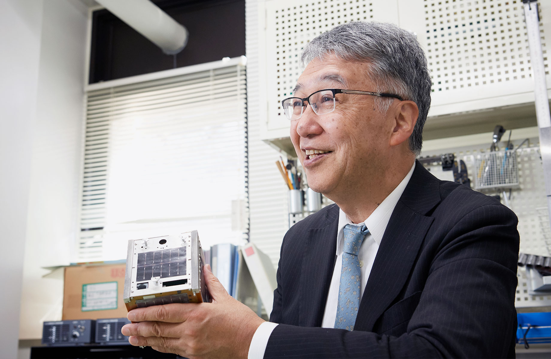 一番大きな柱は超小型人工衛星の研究です。2003年に世界で初めて1㎏の超小型人工衛星の打ち上げに成功しました。このことが、世界各地で小型人工衛星の開発が進み、さまざまな用途や宇宙ビジネスに使用されるきっかけとなりました。