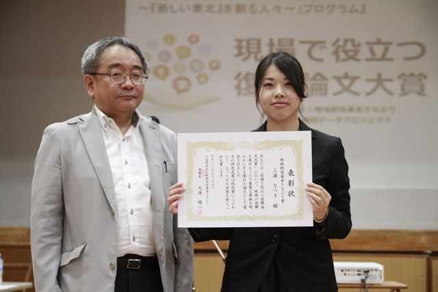 三浦なつきさん(政策科学部4回生)が第1回現場で役立つ復興論文大賞(地域創造基金さなぶり賞)を受賞