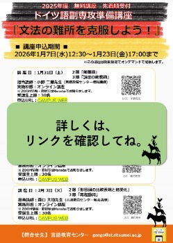 【副専攻準備講座】春期集中ドイツ語の講座情報を更新しました。 - 2025.11.25