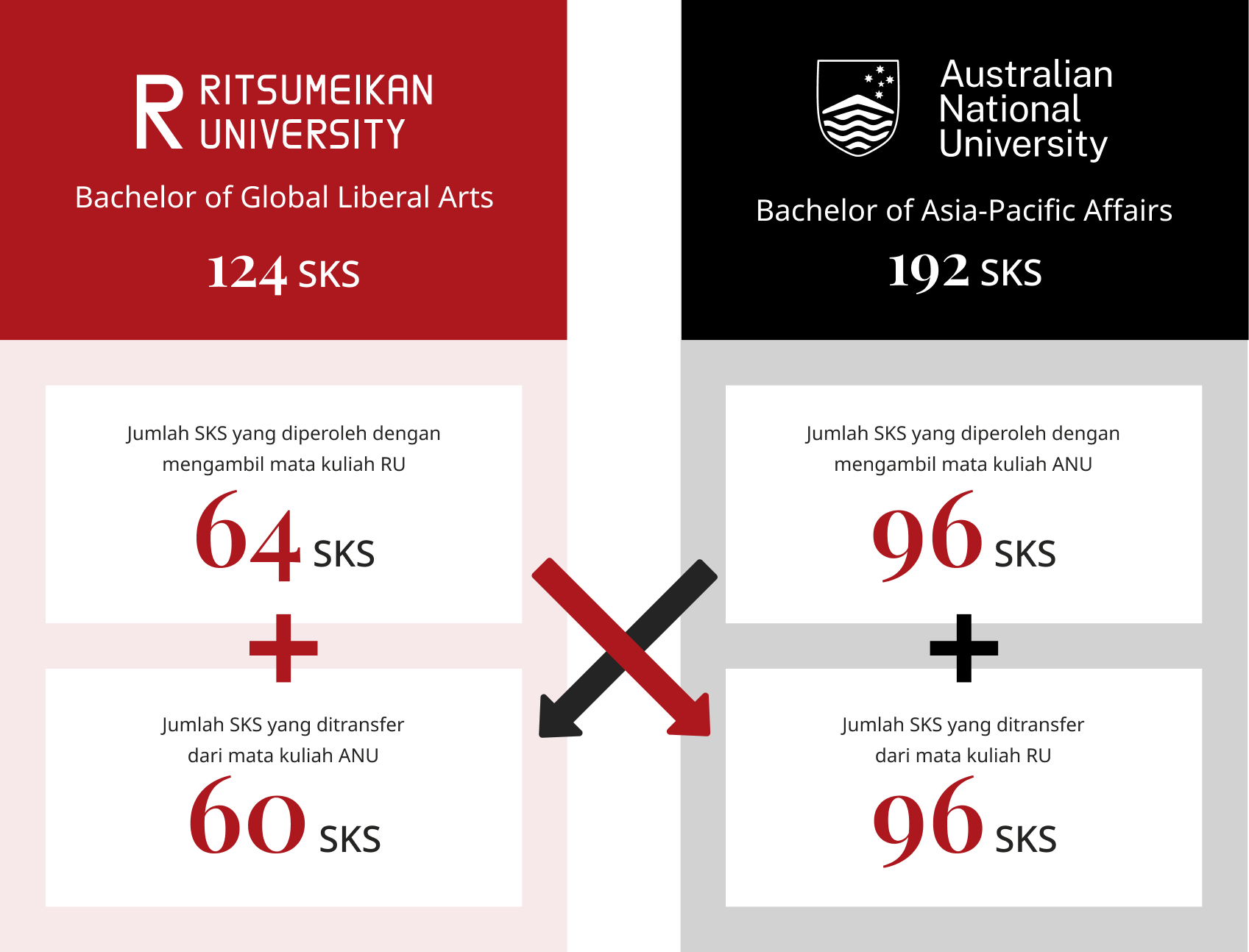 Di Jepang, mahasiswa akan mempelajari program liberal arts, sebuah program pendidikan interdisipliner dengan fokus untuk menjadi anggota masyarakat global yang proaktif di abad ke-21. Di Australia, mereka akan mempelajari ilmu Hubungan Internasional dan bidang-bidang yang terkait serta memperdalam pengetahuan mereka tentang kawasan Asia-Pasifik. Pengalaman belajar di dua institusi dan dua negara berbeda ini akan menghadirkan perspektif, peluang, dan ekspektasi yang akan memberikan mahasiswa lebih banyak pilihan karier di masa depan.
