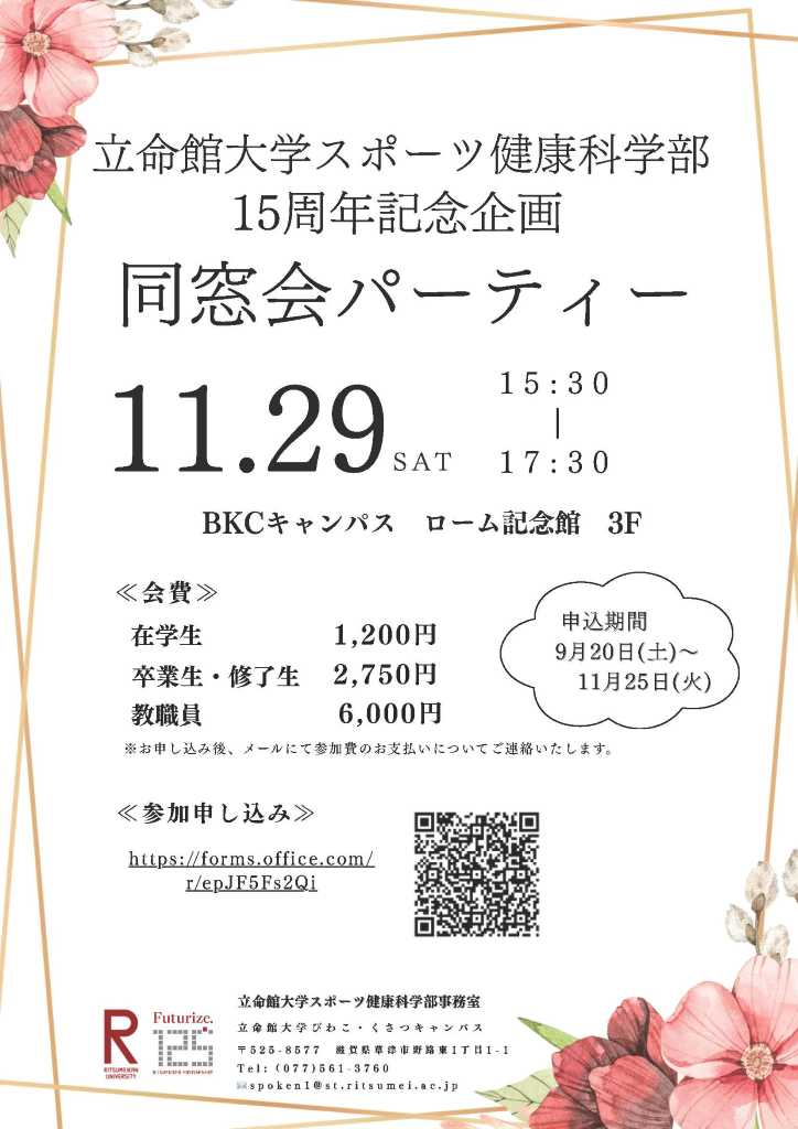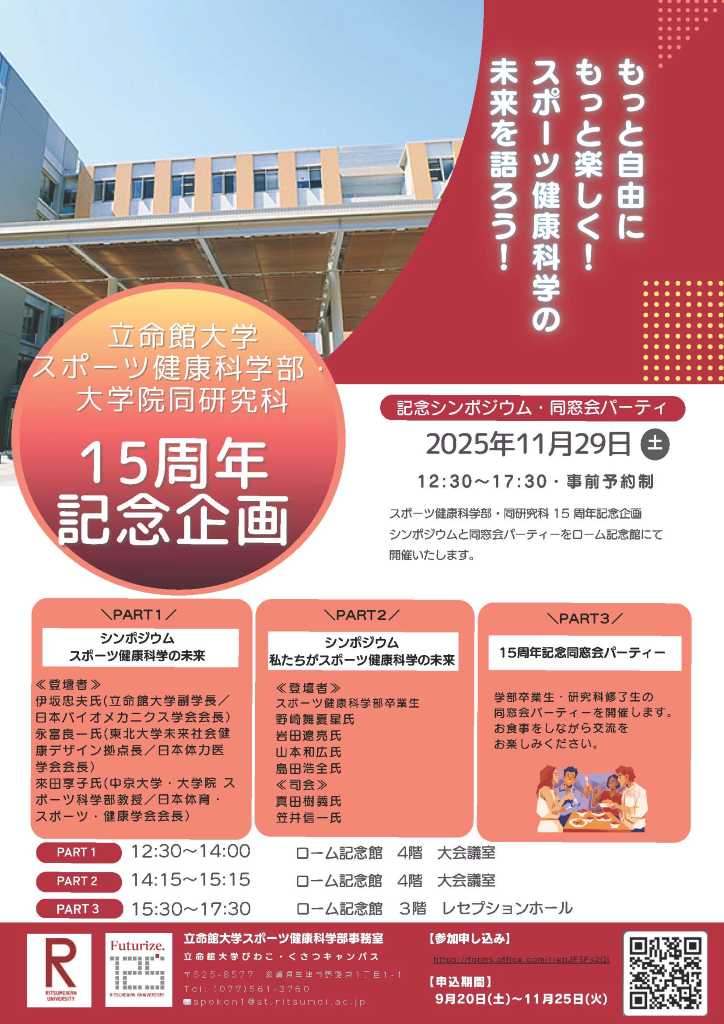 立命館大学スポーツ健康科学部・大学院同研究科は 2025年に創設15周年を迎えます!!