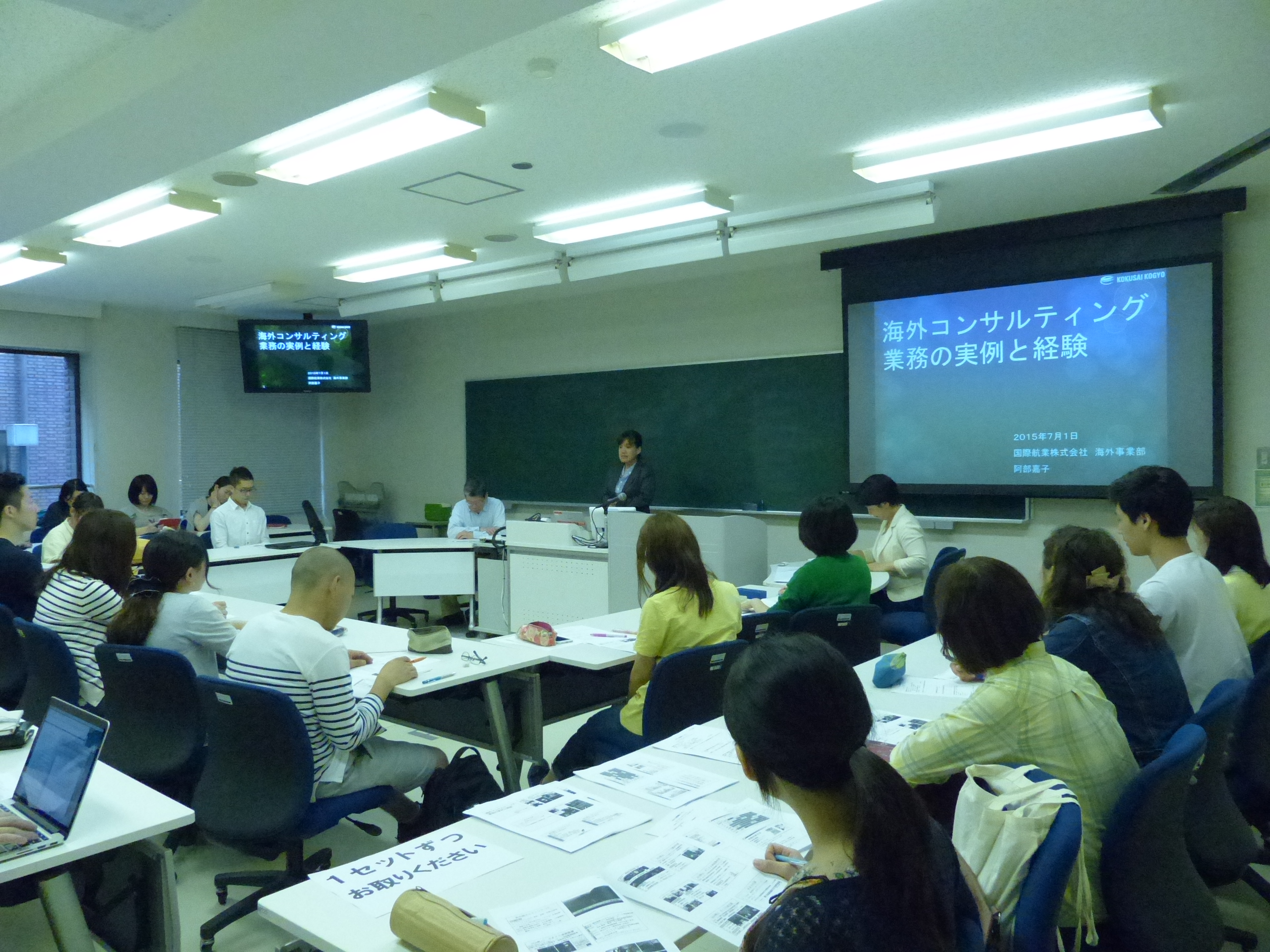 参加した学生はいずれも将来開発コンサルティングを就職先として視野に入れており、熱心に聞き入っていた。講座終了後も学生たちから講師へ多くの質問を寄せ、講座は盛会に終わった。
