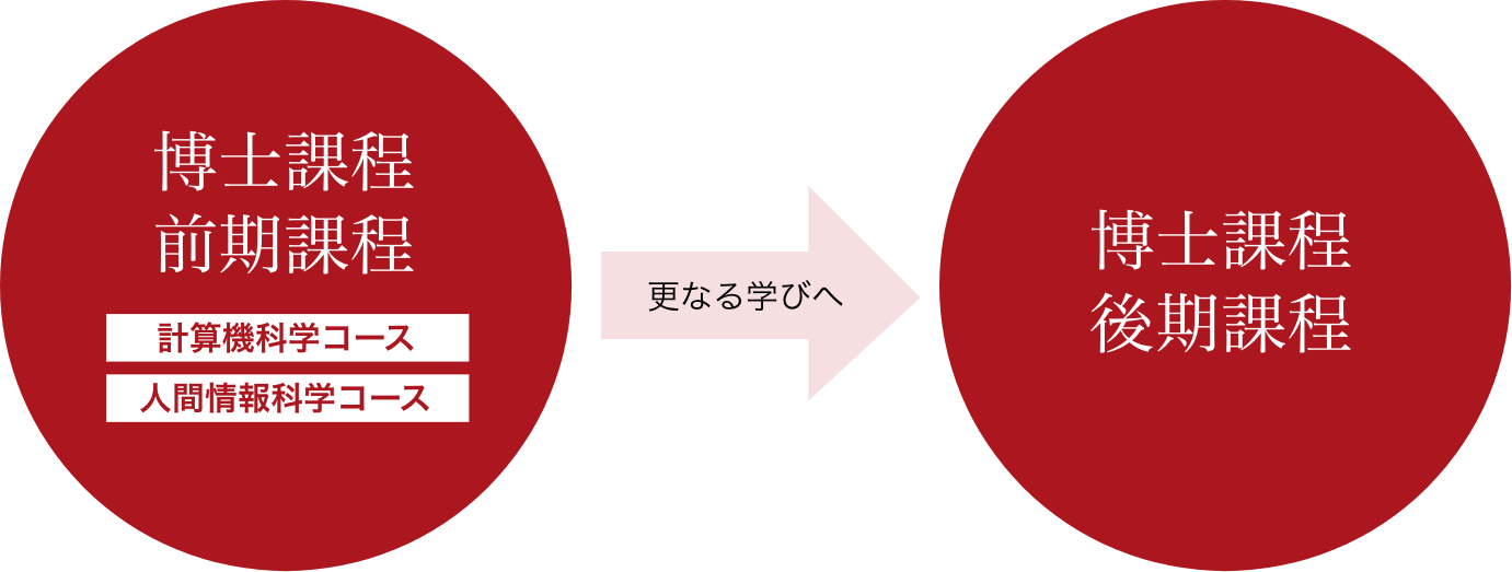 前期課程では、情報処理、ネットワークおよびシステムの構築の基盤技術、情報メディア、人および知能におよぶ応用技術、情報技術の最先端領域に至る理論および技術ならびに論理に関する知識、問題分析能力、問題解決能力ならびコミュニケーション能力を備え、情報化社会の課題に取り組んで解決し、国内外で活躍できる研究者および高度専門職業人を養成することを目的とします。
