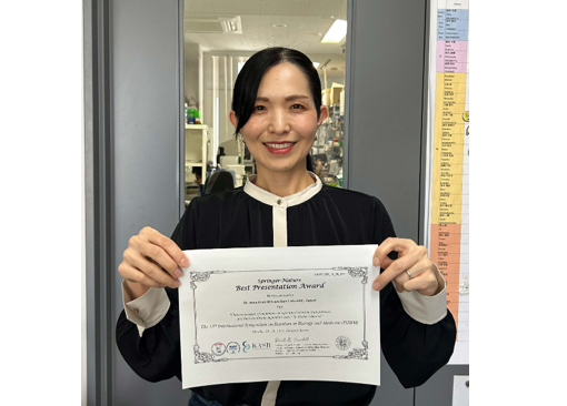 2025.11.25生物工学科 越智杏奈特任助教がThe 13th International Symposium on Selenium in Biology and Medicine (ISSBM)にてSpringer-Nature Best Presentation Awardを受賞しました!!