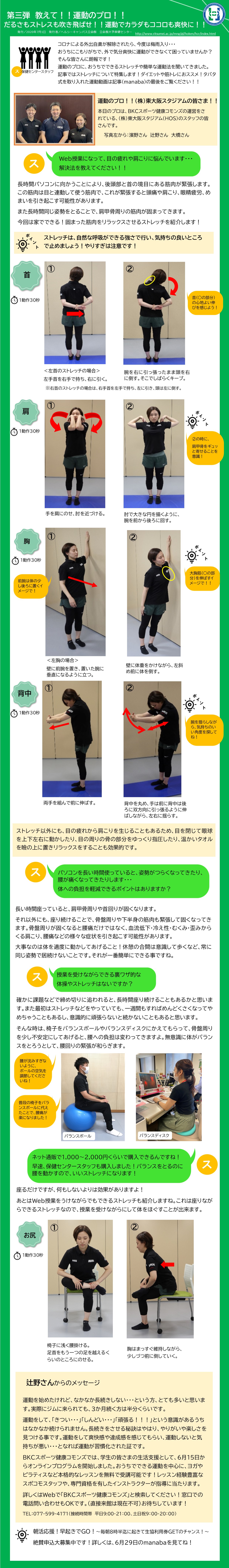 オンライン授業で肩や目は疲れていませんか?毎日のスキマ時間にストレッチ・簡単エクササイズを取り入れてみましょう!