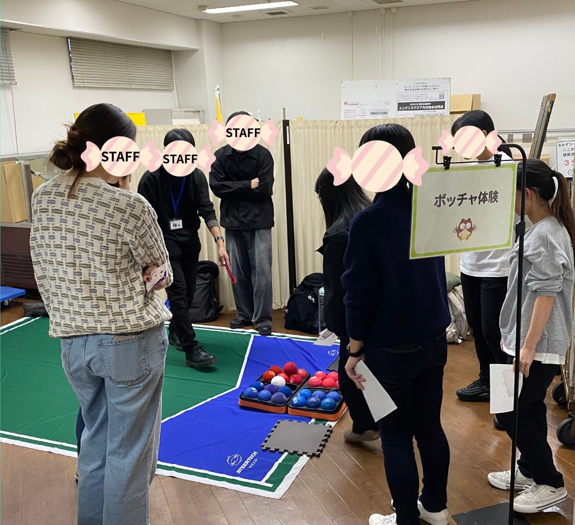 楽しく体を動かしながら、自分の健康について考えてほしいという思いのもと、生協学生員・ボッチャサークルLargoの皆さんと一緒に開催しました。